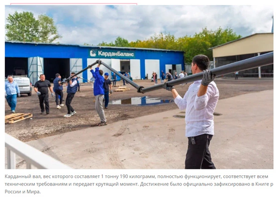 В Москве установили новый мировой рекорд: создан самый длинный карданный вал