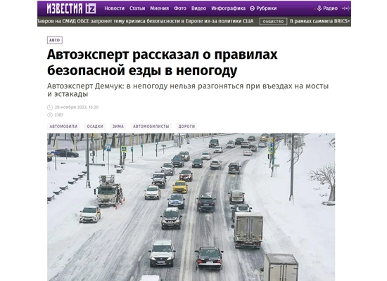 Автоэксперт рассказал о правилах безопасной езды в непогоду