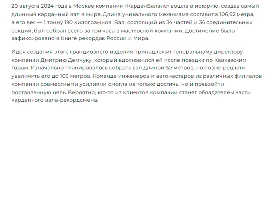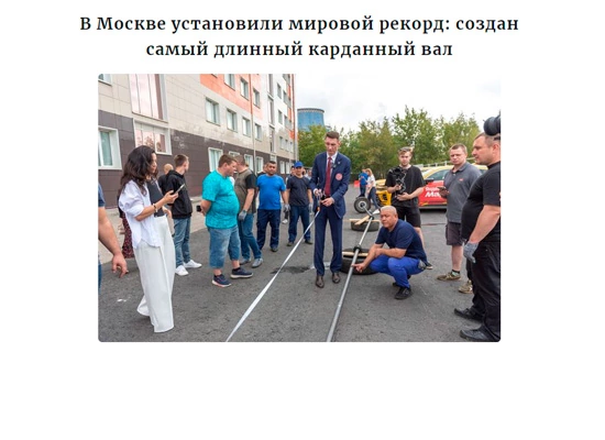 В Москве установили мировой рекорд: создан самый длинный карданный вал