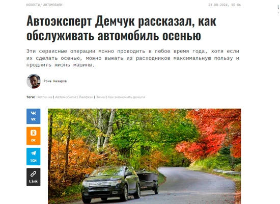 Автоэксперт Демчук рассказал, как обслуживать автомобиль осенью