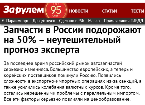Запчасти в России подорожают на 50% – неутешительный прогноз эксперта